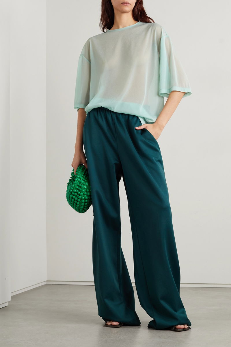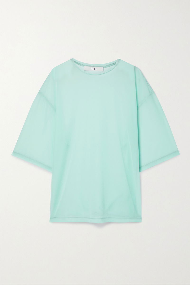 Tibi's knitted T-shirt is knitted has an incredibly lightweight feel. It's designed for a loose, oversized fit and has dropped shoulders. Create a cool monochrome look by teaming it with darker shades of mint.