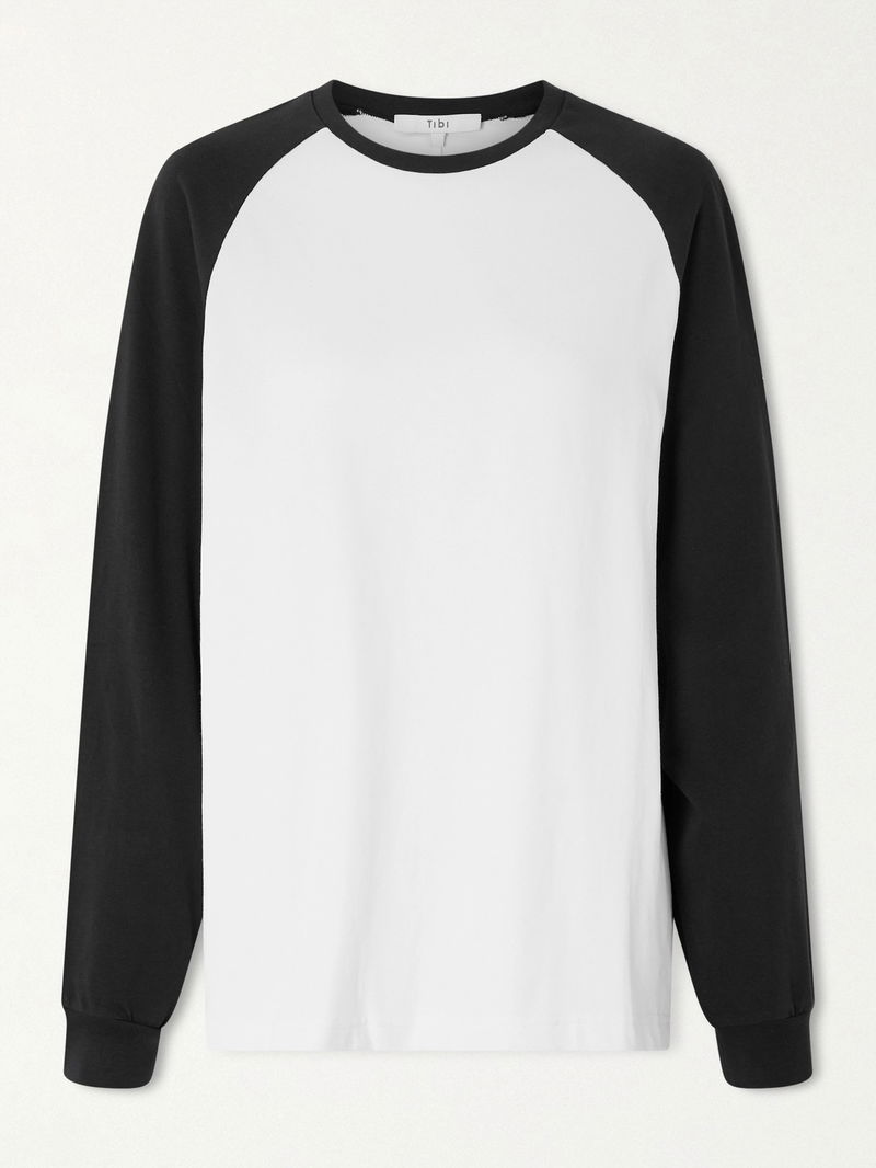 The two-tone palette of Tibi's T-shirt is inspired by classic baseball styles. It's cut from soft cotton-jersey and finished with ribbed cuffs to perfect the relaxed fit. Style yours with trusty denim.