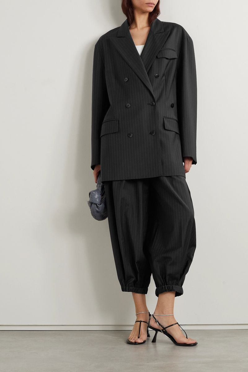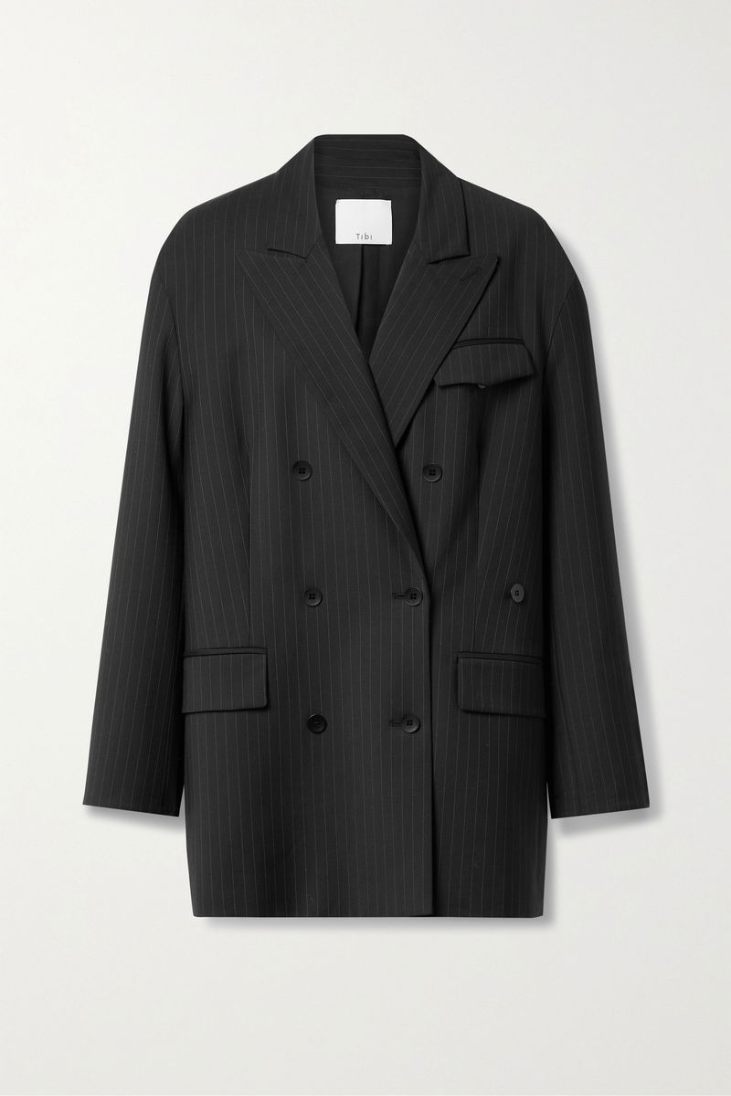 Tibi's blazer premiered at the showcasing of the label's versatile Spring '23 collection. Cut for a relaxed fit, it's tailored from pinstriped wool-blend with an elegant double-breasted front and sharp peak lapels. Style yours with billowy pants or echo the runway and layer it over a floaty midi dress.