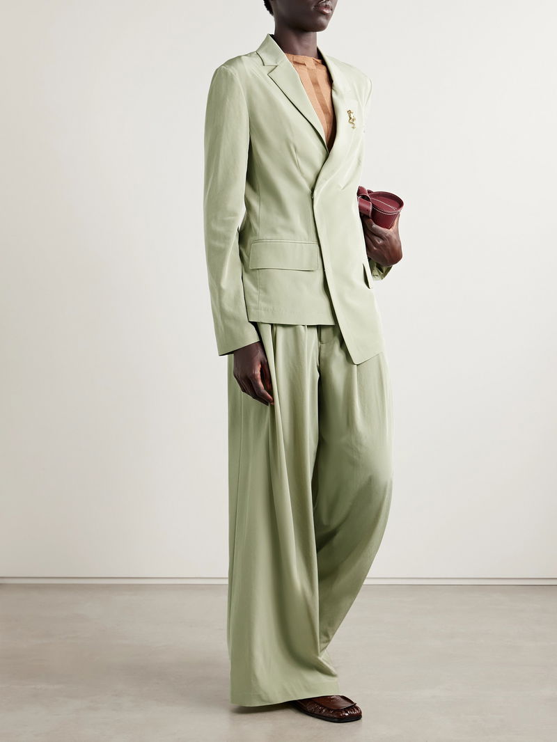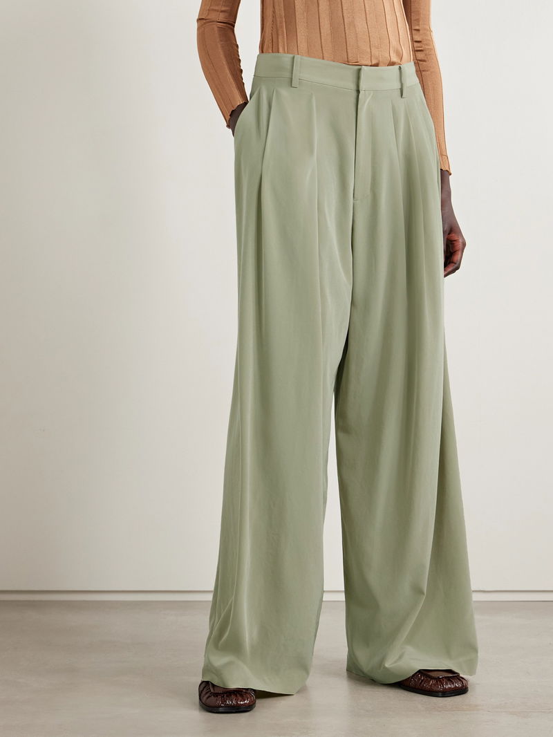 Tibi's pants make such a chic set when worn with the matching blazer in our edit. Tailored from lustrous crepe de chine, they have an effortless wide-leg shape emphasized by sharp pleats. The 'Moss Gray' shade is so pretty.