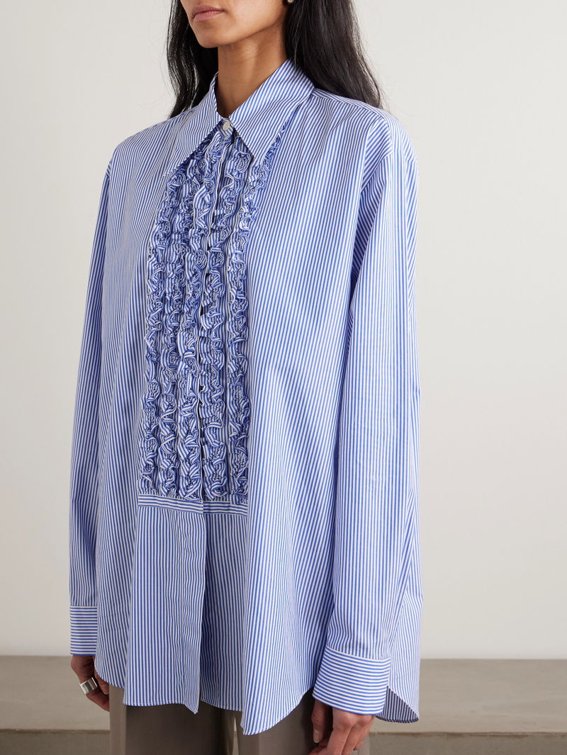 Tibi has reimagined the iconic frilly ‘80s tuxedo shirt with a fresh, contemporary lens. It’s cut from striped cotton-poplin for a fit that’s loose, easy and relaxed. We love it with pants and chunky loafers.