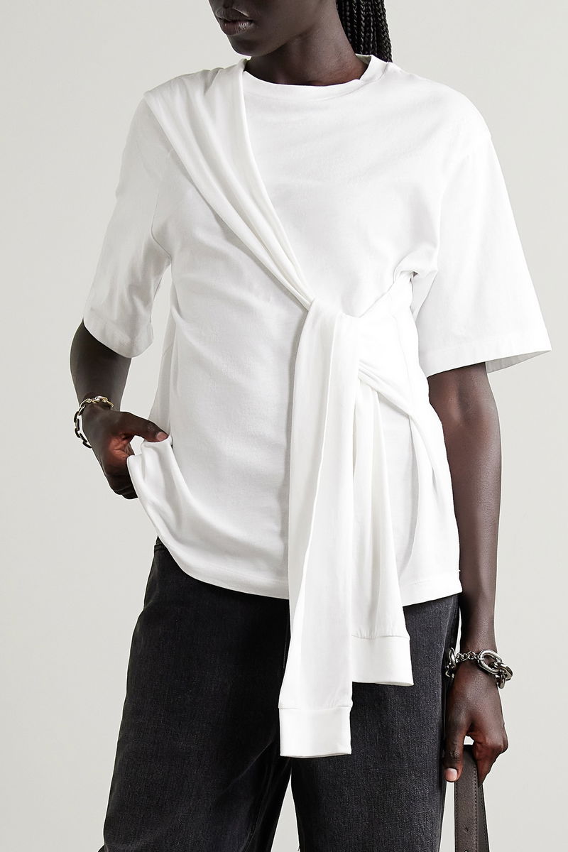 Tibi knows just how to rework the classic T-shirt to make it look modern and cool. This version is designed with a diagonal tie detail that creates the illusion of layering and is made from soft cotton-jersey for a relaxed fit. Leave yours untucked from wide-leg jeans or tailoring.