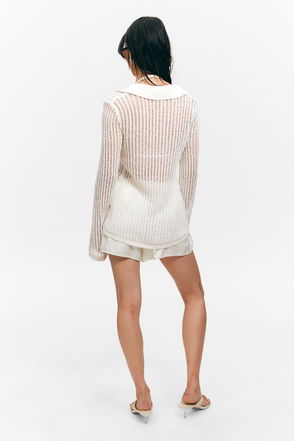 Effortlessness is at the core of Tibi's Pre-AW20 offering, expressed in this off-white cardigan featured in the lookbook. It's made from a recycled wool blend that gives the appearance of dotted tweed and is accented with an elbow patch before fastening with horn-effect buttons. Emulate the label's styling by teaming it with a matching top and streamlined shorts.