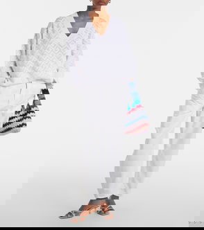 This off-white V-neck sweater embodies designer Amy Smilovic's two main considerations for Tibi's Pre-AW20 collection, sustainable awareness and everyday practicality. It's crafted in Hong Kong from a wool blend knitted with recycled yarns and mimicking the appearance of tweed, then ribbed along the edges. Balance the boxy silhouette with slim jeans and heeled boots.