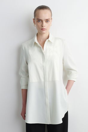 Tibi's shirt is modeled on classic menswear styles. It's cut from lightweight wool-blend gauze in a loose shape that's enhanced by dropped shoulder seams. Wear it partially tucked into sleek tailoring.
