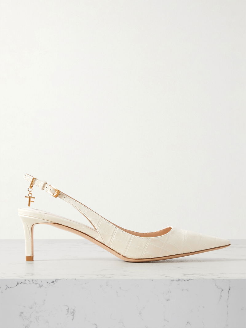 Angelina Logo-embellished Croc-effect Leather Slingback Pumps
