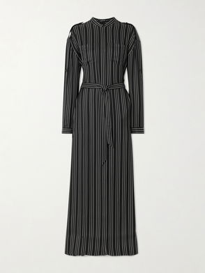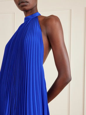 Tom Ford showcases the elegant drape of this fluid crêpe cocktail dress with precisely placed panels of varying lengths. A scarf detail extends from the mockneck front, cascading to the floor atop the asymmetric hem.