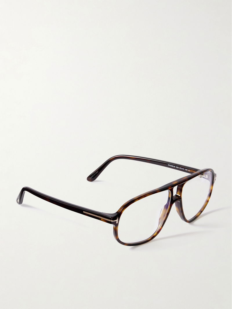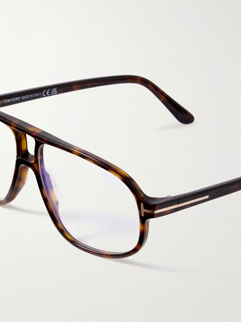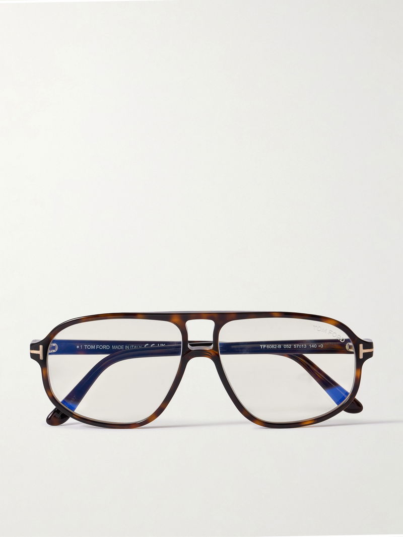TOM FORD Eyewear's glasses are inspired by men's frames in their subtly oversize proportions. They've been made in Italy from tortoiseshell acetate and feature the signature T-shaped hinges in gold-tone metal. Swap out the lenses for your prescription.