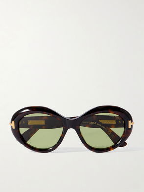 Tom Ford's 'Bronson' sunglasses are made from glossy black acetate and have oversized aviator-style frames. They're fitted with 'Smoke' lenses and - as with all of the brand's eyewear - the temples are adorned with the brand's signature gold-tone 'T' logo.