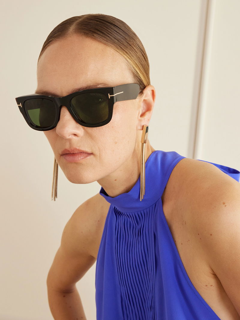 The lenses on TOM FORD Eyewear's optical glasses are designed to reduce blue light exposure from digital screens. Made from black and tortoiseshell acetate, they have a classic D-frame shape and are detailed with gold-tone 'T' hardware at the temples. Pop them in the case whenever you take them off to keep them in the best condition.