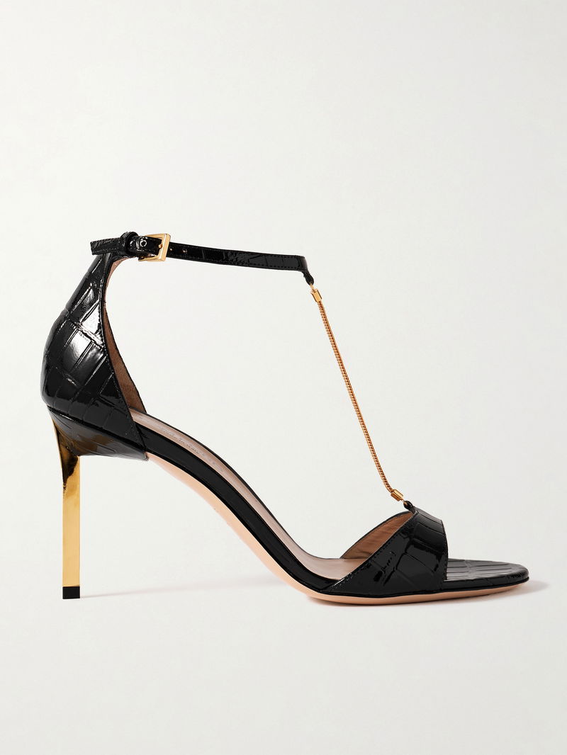 Emanuelle Chain-embellished Croc-effect Leather Sandals
