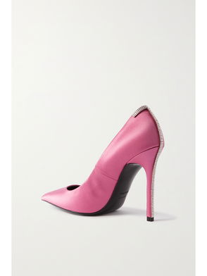 Tom Ford's 'Eva D'Orsay' pumps were seen on the Fall '25 runway. Made from smooth satin, they have loafer-style vamps, slender pointed toes and 105mm stiletto heels.