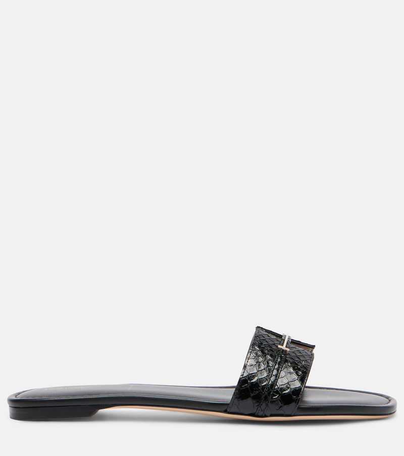 Be sure to add Tom Ford's Julianne slides to your footwear lineup. This black pair is made from croc-effect leather and complete with gold-toned T hardware on the uppers.