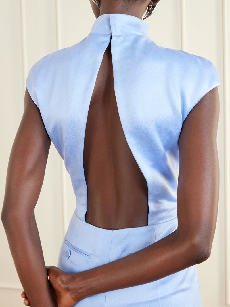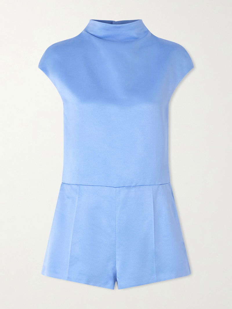 TOM FORD's playsuit comes in the brand's fresh 'Mineral Blue' shade. Made from cotton and silk-blend duchesse-satin, its tailored touches include a turtleneck, pleated shorts and an exposed back.