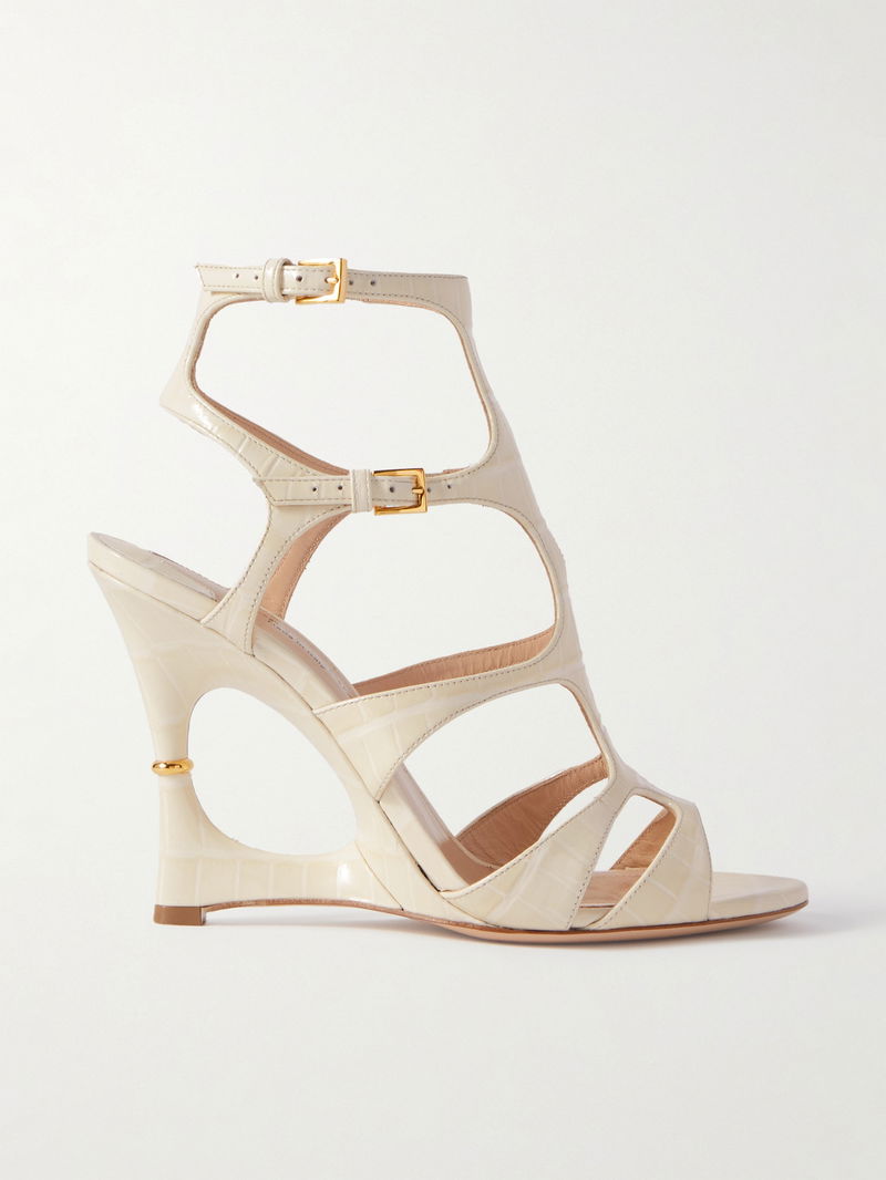Paradis Cutout Croc-effect Leather Wedge Sandals
