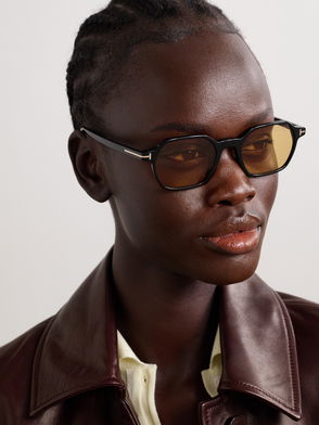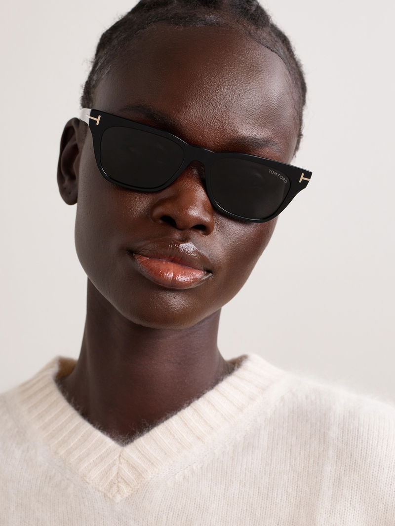 Tom Ford Eyewear's sunglasses are made from glossy acetate and fitted with gray-tinted lenses. Designed with classic D-frames, they're finished with the brand's signature 'T' hardware at the temples.
