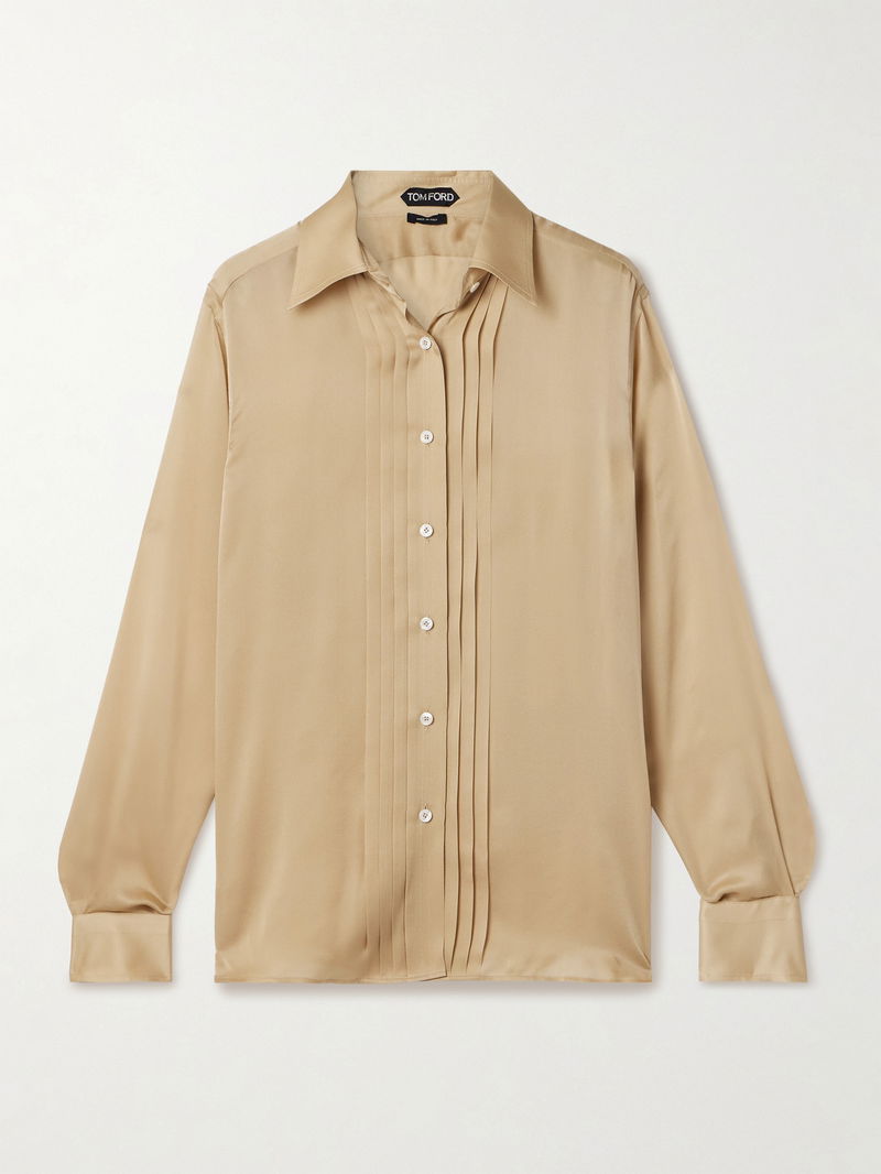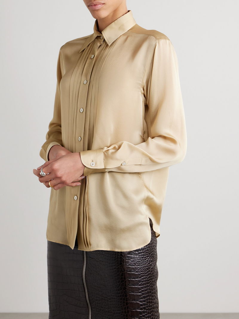 Pleated Silk-charmeuse Shirt