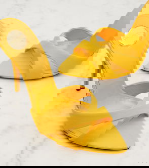 The sculptural kitten heels of TOM FORD's sandals are detailed with the label's signature gold-tone 'T' emblem. They're made from rich yellow satin with rounded toes.