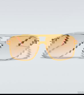 The Stavros aviator sunglasses from Tom Ford are crafted from gold-tone metal for a high-octane look. Retro elements like yellow lenses and tortoiseshell trim contrast with the modern T Logo design on the front.