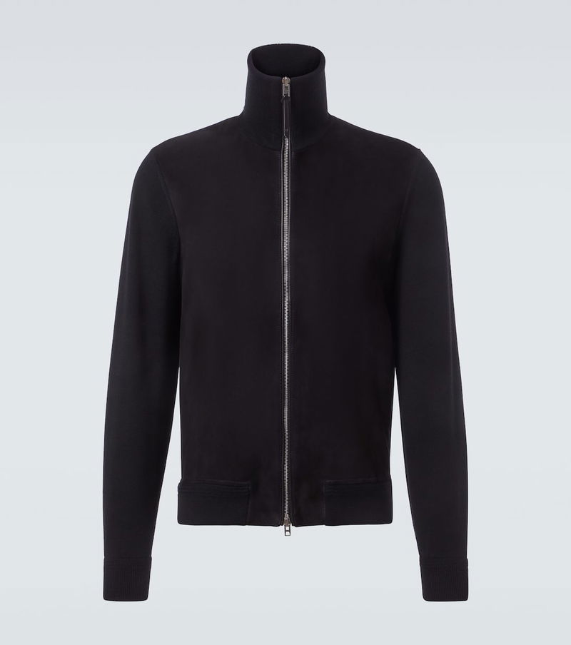 Invest in everyday staples with a modern edge, like the ones designed by Tom Ford. Knitted from warm wool-blend yarns, this zip-up sweater comes with a suede panel on the front for a sleek finish.