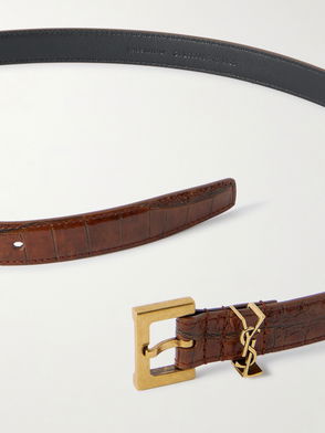 Enhance day-to-night ensembles with sophisticated accessories, like this belt from Tom Ford. The design is made from croc-embossed leather for a shiny effect and complete with the brand's T buckle.