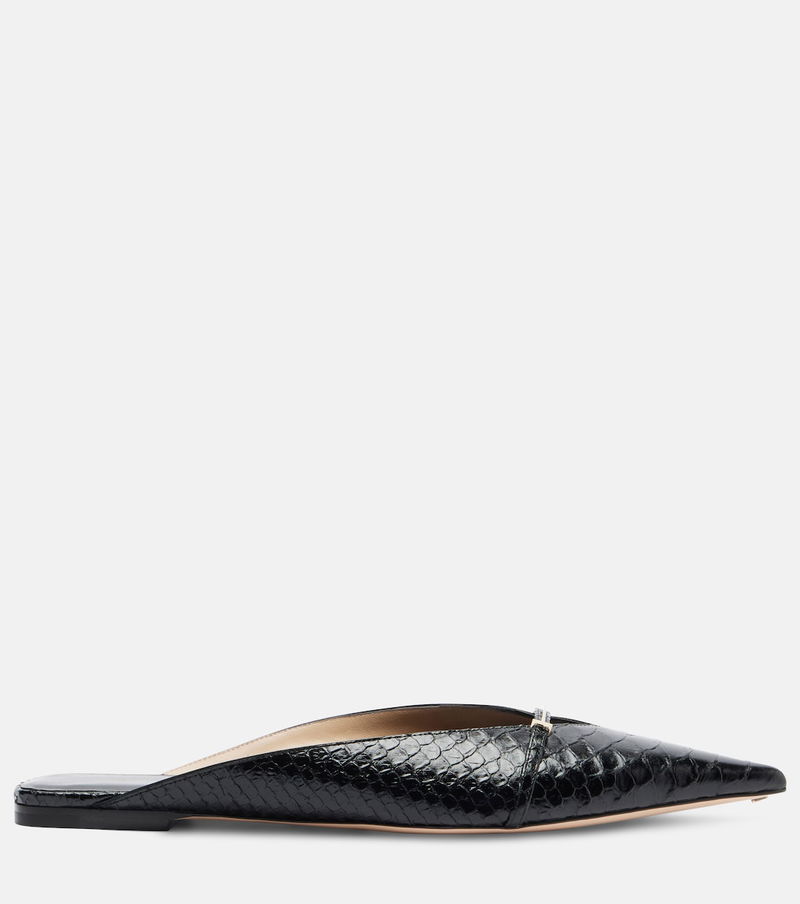 Sleek sophistication characterized Tom Ford's designs, including these flat sandals. Elegant and modern, the pair is made from croc-embossed leather with T Icon details on the vamps.