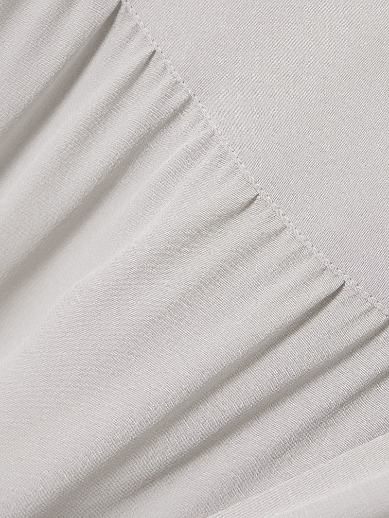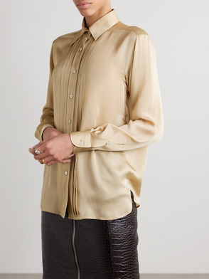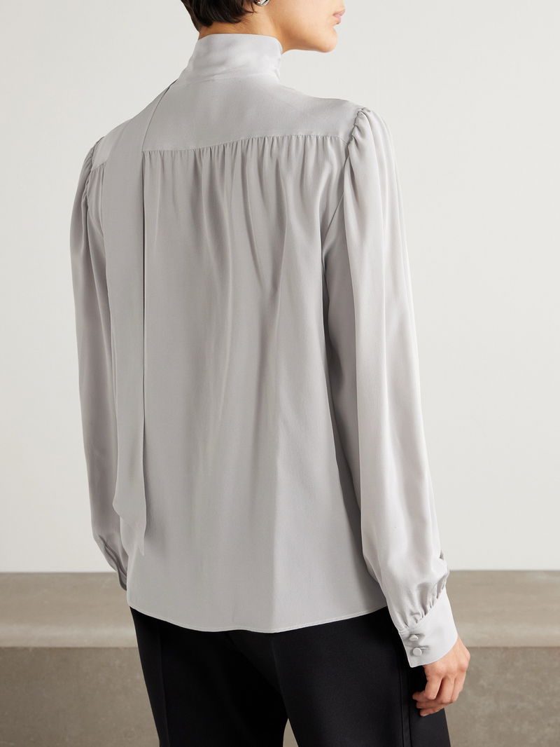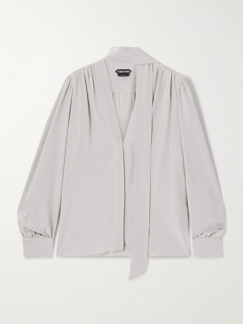 Under Haider Ackermann, TOM FORD continues to embrace fluidity and sensuality. This blouse is cut from silk crepe de chine with a plunging neckline framed by fluid ties. Wear yours with tailored pants and sleek heels.