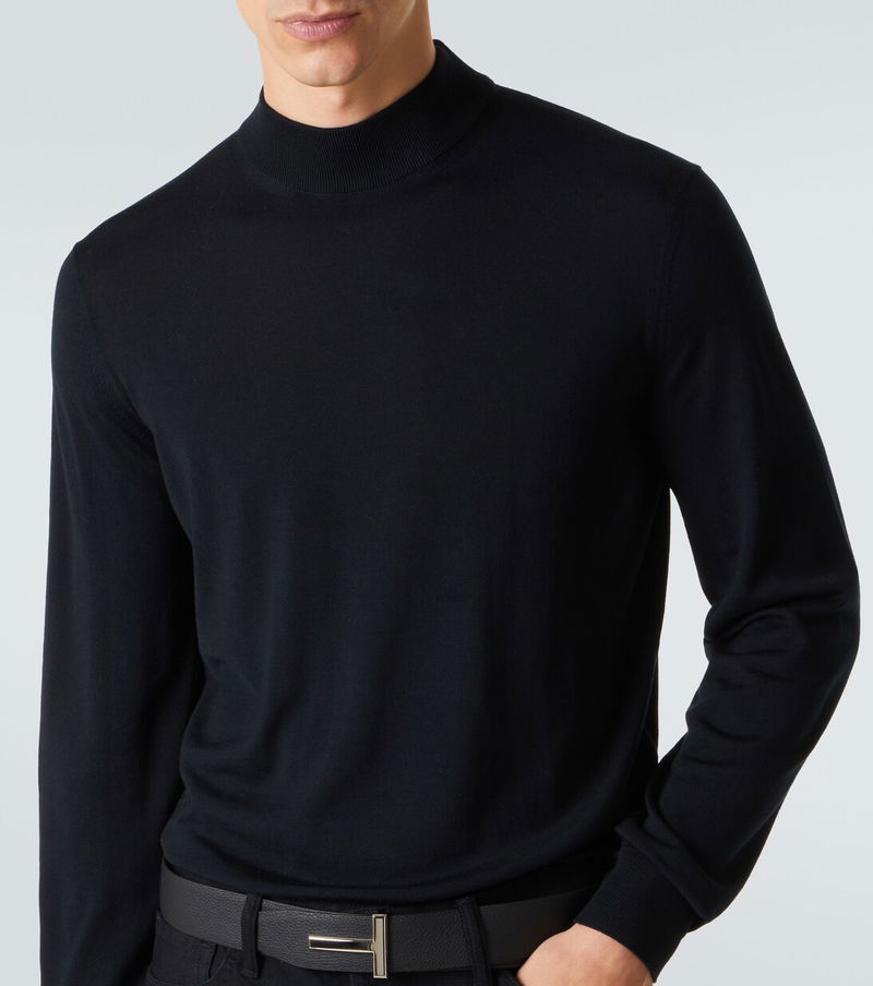 Tom Ford’s tailoring showcases meticulous attention to detail with a dose of high-octane glamour. This sweater is made from pure wool in a mockneck silhouette.