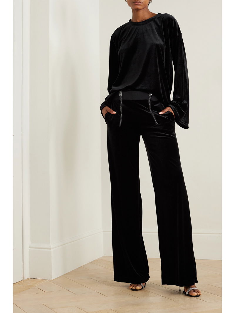 Zip-embellished Velour Track Pants