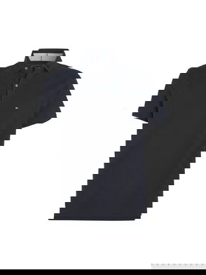 Stretch organic cotton. Polo collar. Two-button placket. Contrast tape inside neckline. Side vents. Signature tape inside neckline. Tommy Hilfiger branding Tommy Hilfiger flag embroidery on chest.