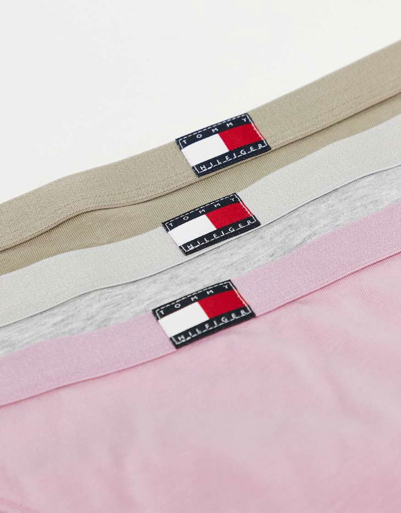 3 Pack Flag Detail Bikini In Pink/grey/sage