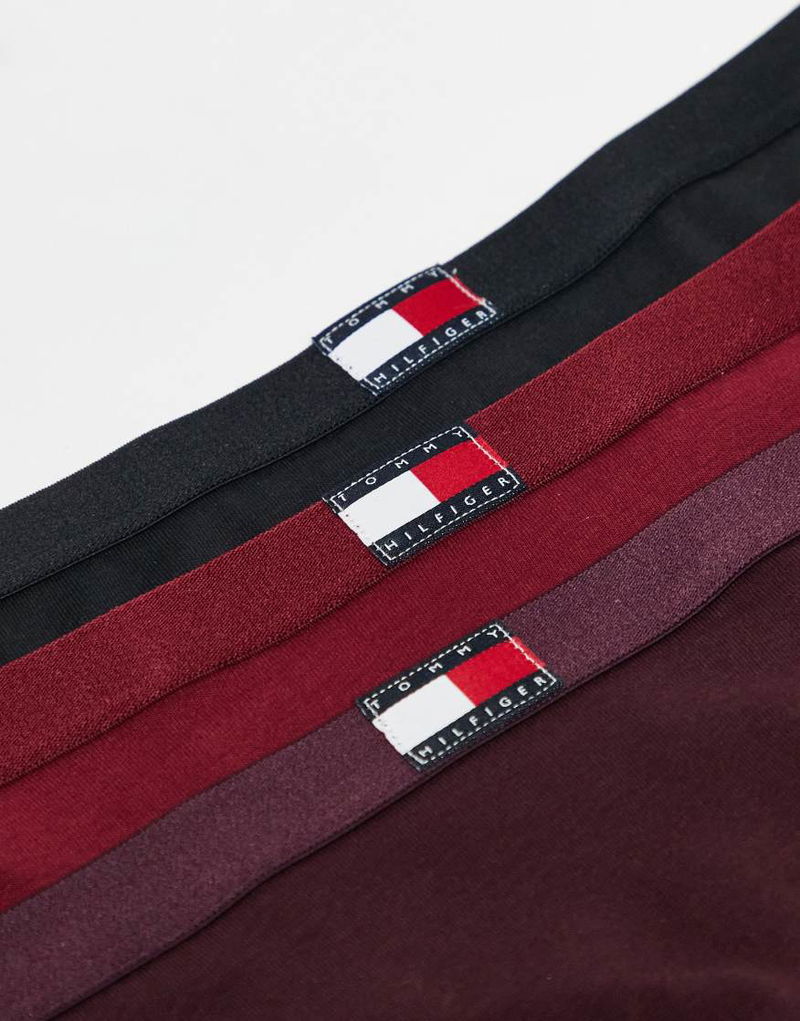 3 Pack Flag Detail Thong In Black/burgundy/red