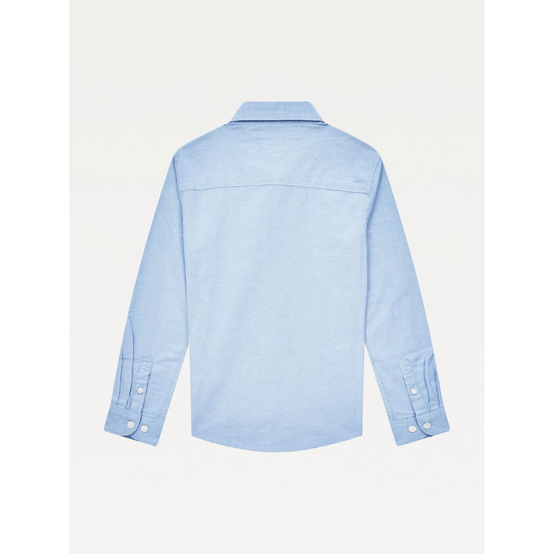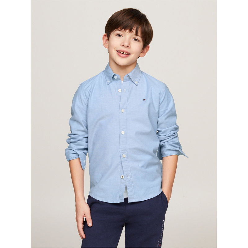 Treat your mini me to this Junior Boys Oxford Long Sleeve Shirt from Tommy Hilfiger. Made from an organic cotton blend composition, this shirt is cut in a regular fit and features a central button closure with a buttoned down collar, long sleeves, buttoned cuffs and a curved hemline for a classic style. Finished with the Tommy Hilfiger flag logo embroidered to the chest for brand recognition, this shirt will keep your little one smart and comfortable.