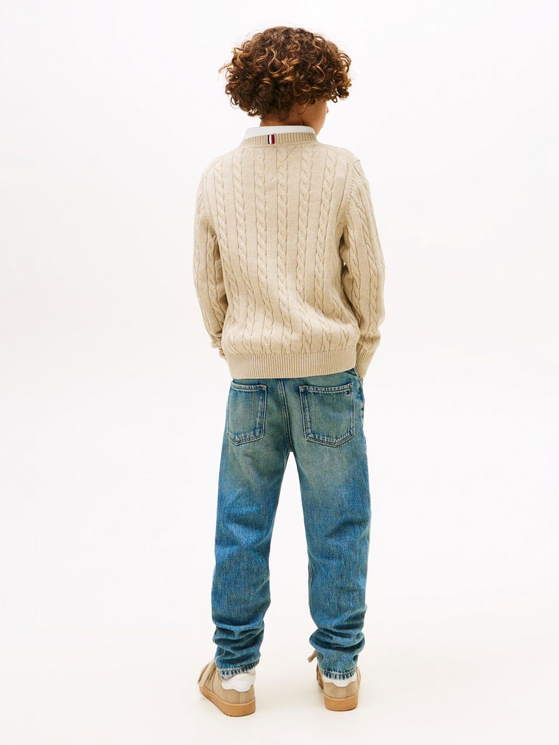 The Cable Knit Crew Neck Jumper by Tommy Hilfiger delivers warm, textured comfort in a clean, everyday silhouette. Crafted for ease, it layers seamlessly through colder months. A polished knitwear option.