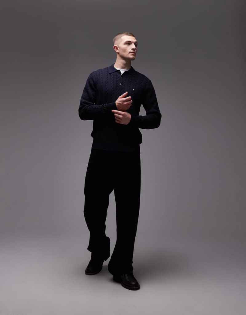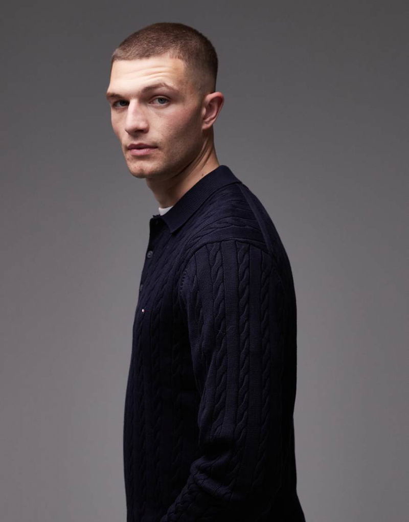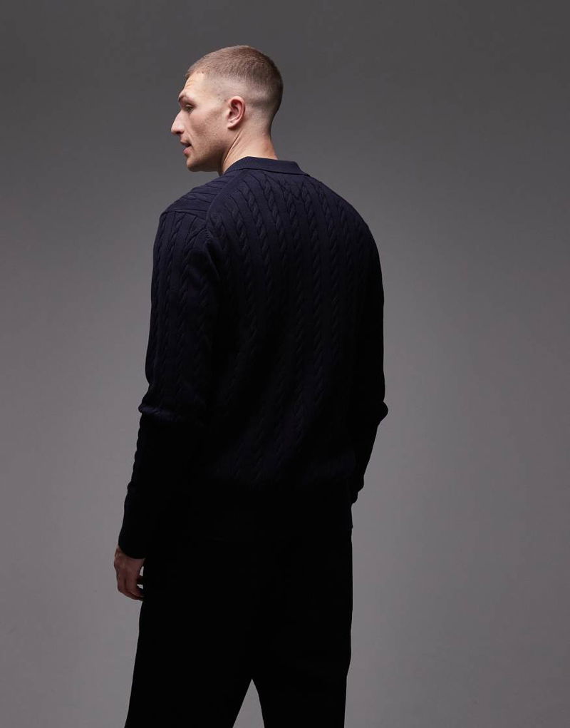 Cable Knit Long Sleeve Polo