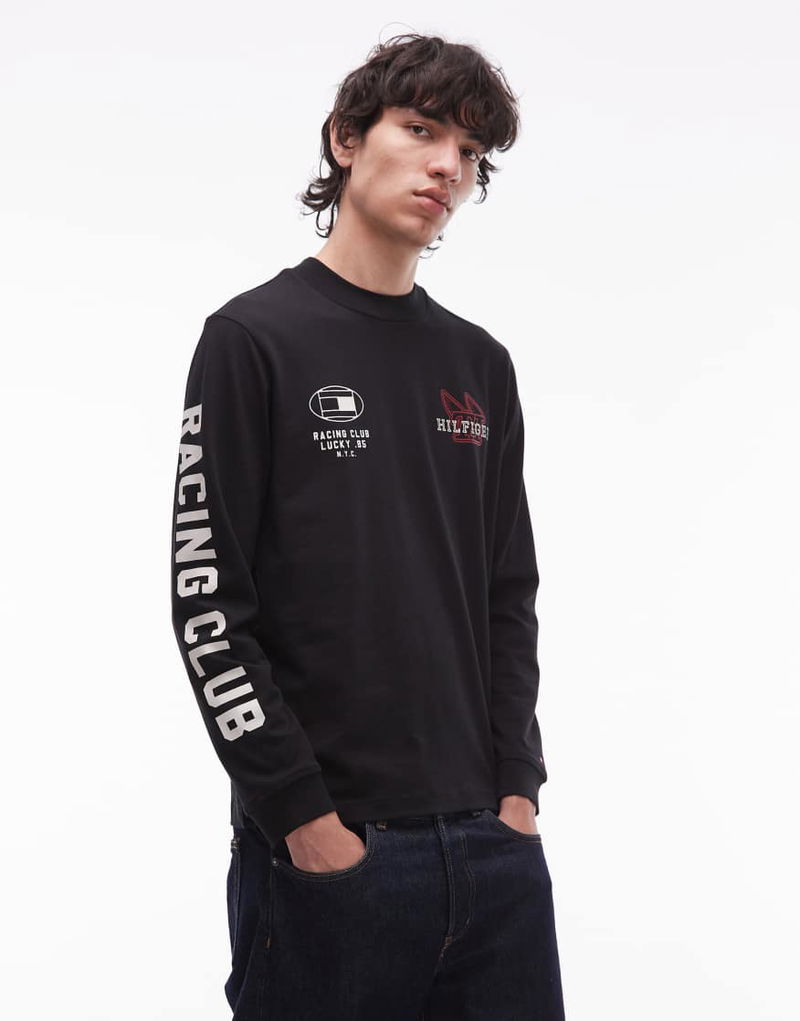 Chest Racing Logo Long Sleeve T-shirt In Black