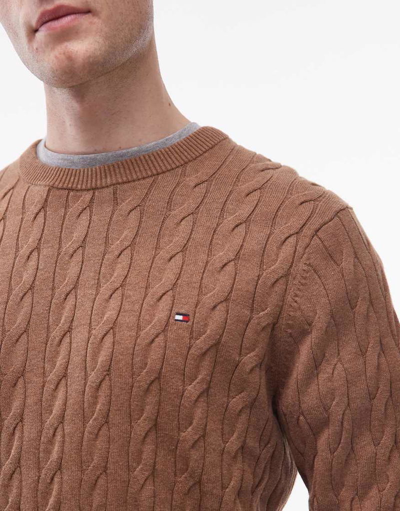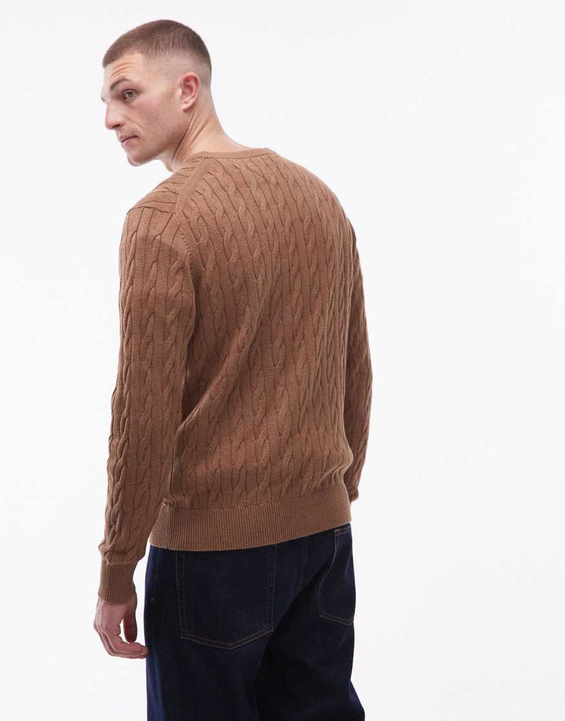 Chunky Cable Knit Jumper In Brown
