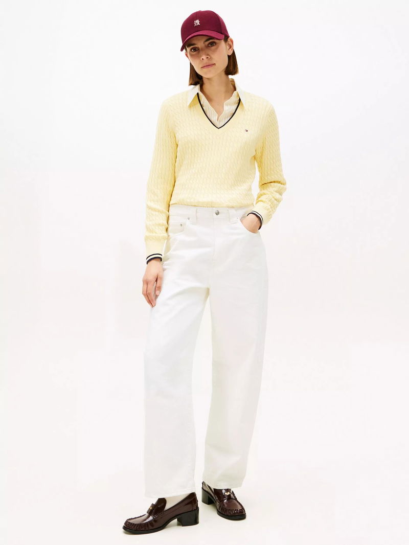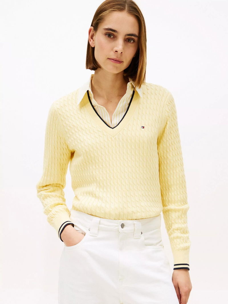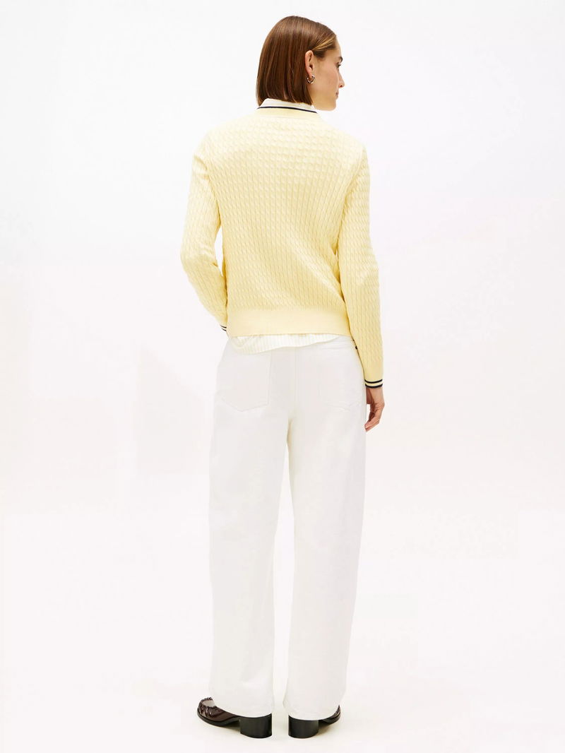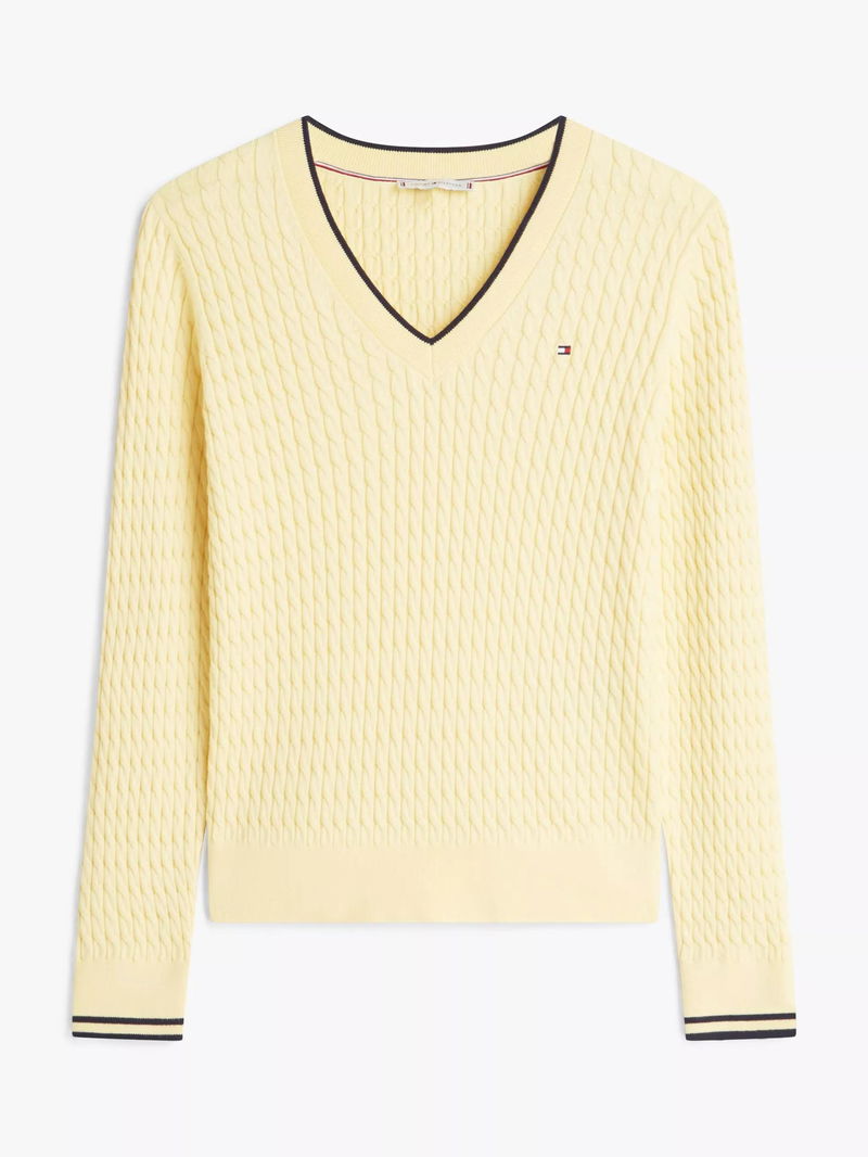Cotton Cable Knit Jumper, Zesty Yellow/Navy