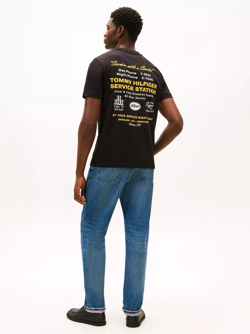 Cotton Regular Fit Service Station Graphic T-Shirt, Black
