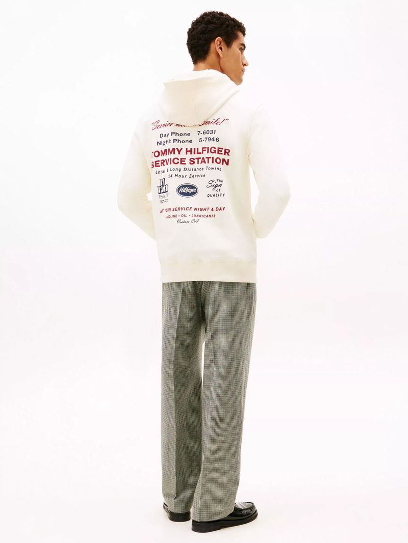 Cotton Service Station Logo Hoodie, Ivory Petal