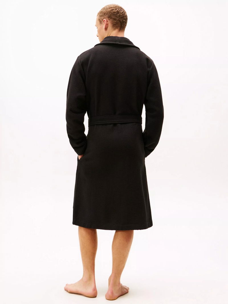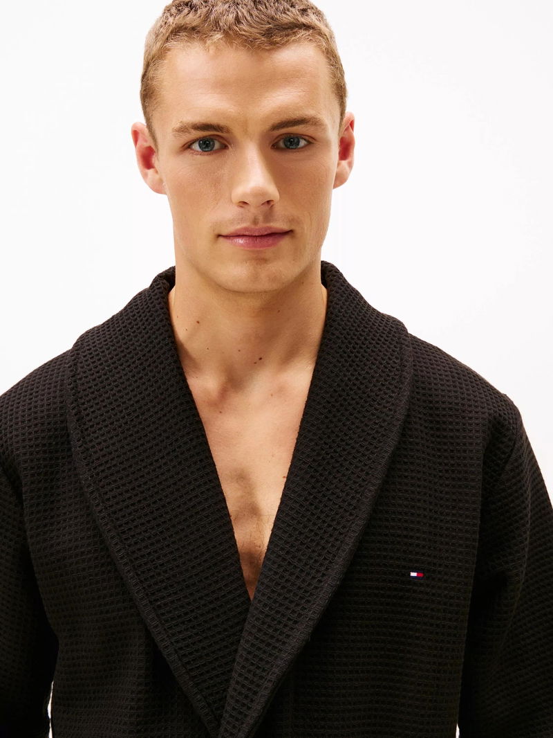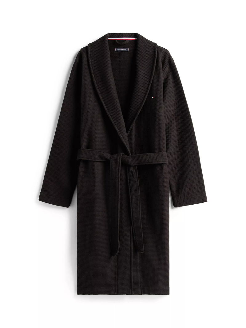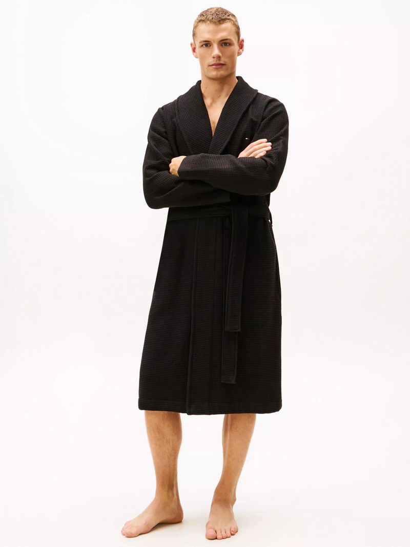 Cotton Waffle Bathrobe, Black