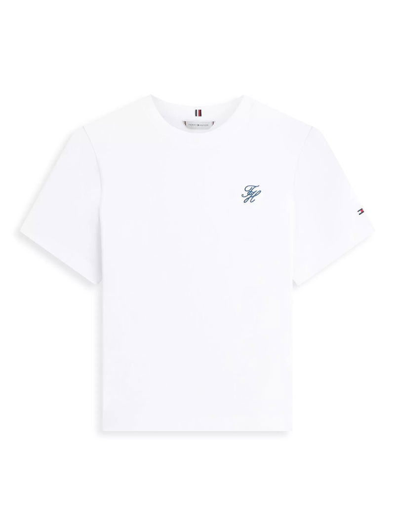 This crew-neck T-shirt is a versatile favourite in a timeless regular-fit silhouette, finished with script logo embroidery for a premium look. Stretch cotton jersey Crew neck Signature tape inside neckline Tommy Hilfiger script logo embroidery on chest Tommy Hilfiger flag embroidery on sleeve.