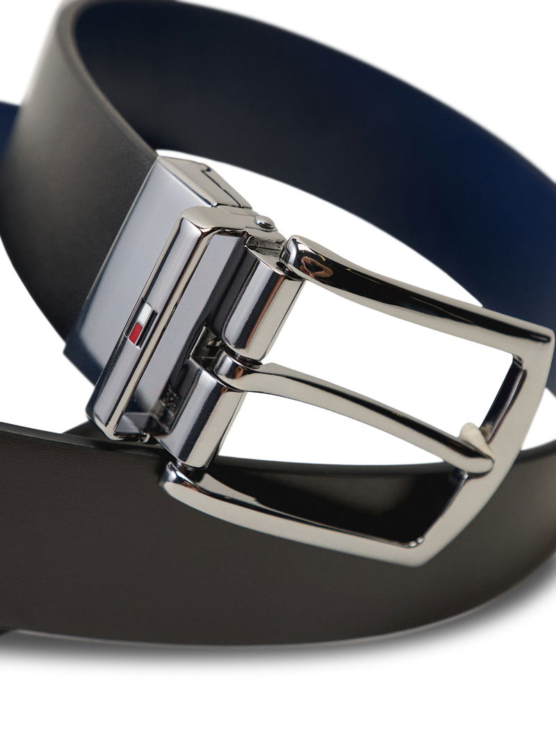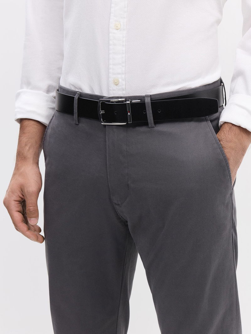 The Denton Leather Belt in black features organic smooth leather and a classic design with a versatile silver metal buckle for lasting style and comfort.