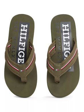 Mens Tommy Hilfiger Essential Beach Flip Flops in blue. * Synthetic upper. * Slip-on design. * Branded retro graphics. * Synthetic lining. * Rubber sole. * Ref.: FM0FM01369403