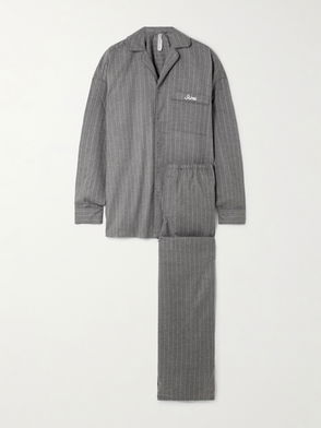This pyjama set is crafted from cotton-blend flannel for a restful sleep. The shirt has notched lapels, cuffed sleeves and a rounded hem. The bottoms have an elasticated, contrast drawstring waist. Tommy Hilfiger branding is throughout.