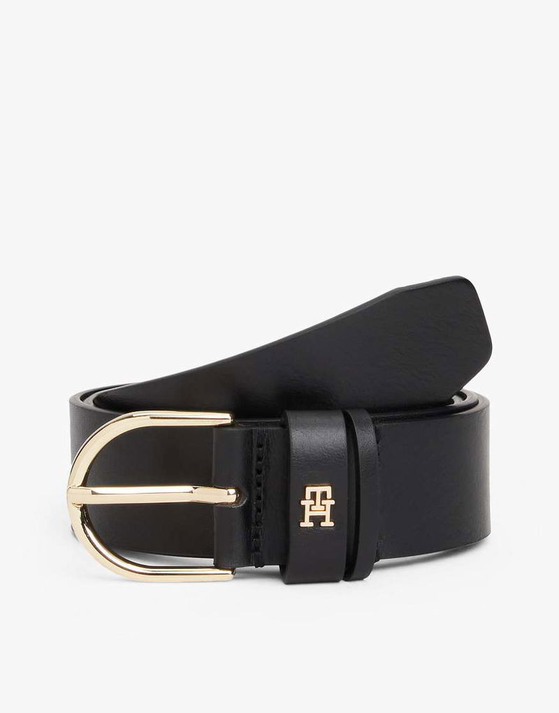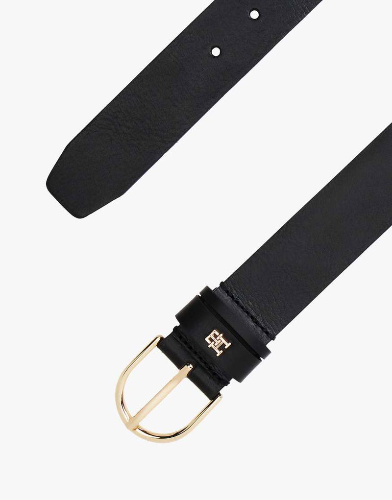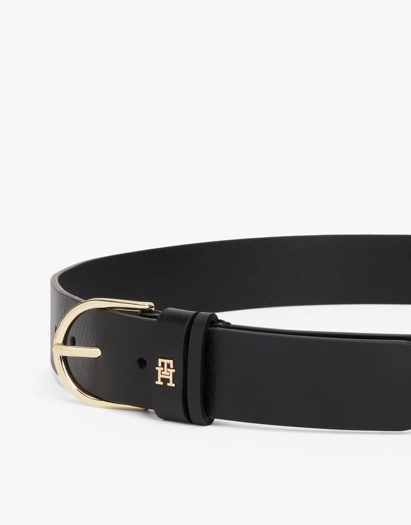 Essential Oval Buckle Leather Belt In Black