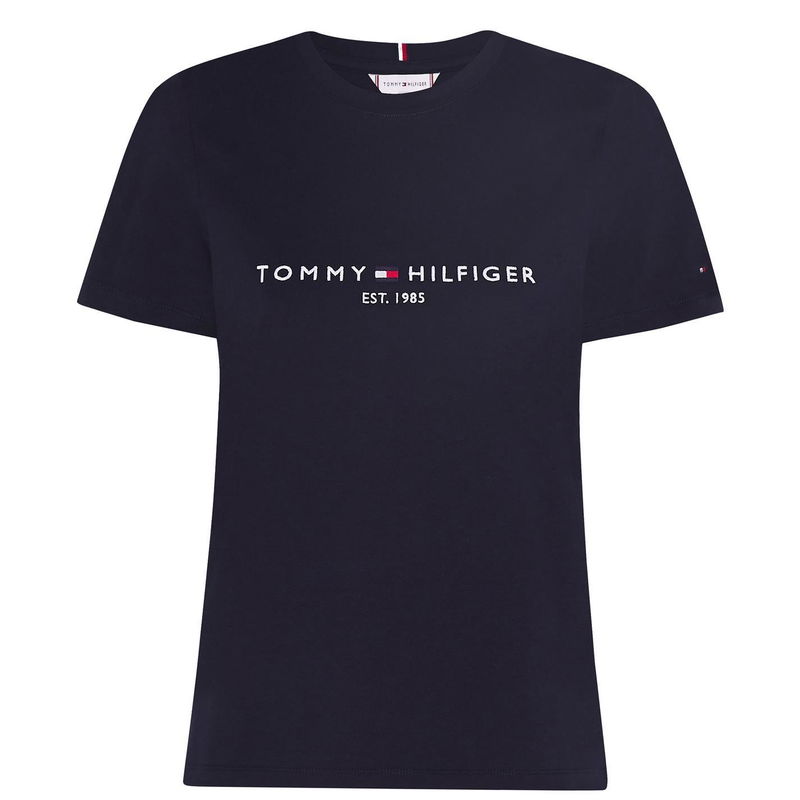 Refresh your everyday collection with this Essential T Shirt from Tommy Hilfiger. Made with quality soft cotton to a regular fit, this tee offers short sleeves with a crew neckline and a ribbed collar for comfort. There is solid colour throughout for versatile styling with a large embroidered Tommy Hilfiger design across the chest with the brands signature flag logo on the sleeve for a classic designer touch.