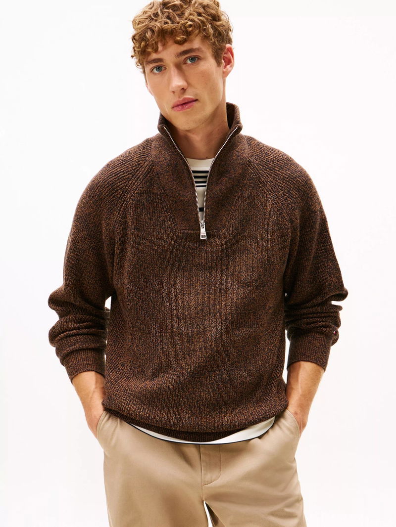 Fisherman Rib Half-Zip Mock Neck Jumper