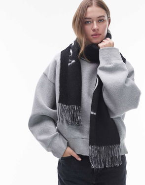 Flag Fluffy Scarf In Black