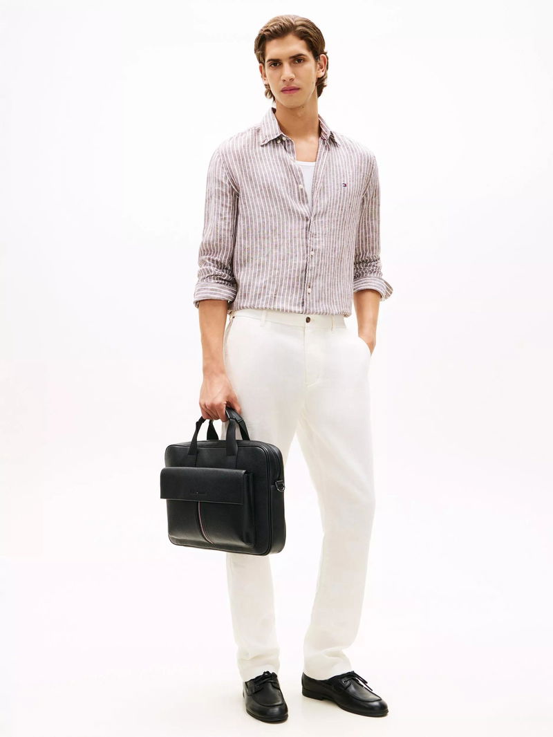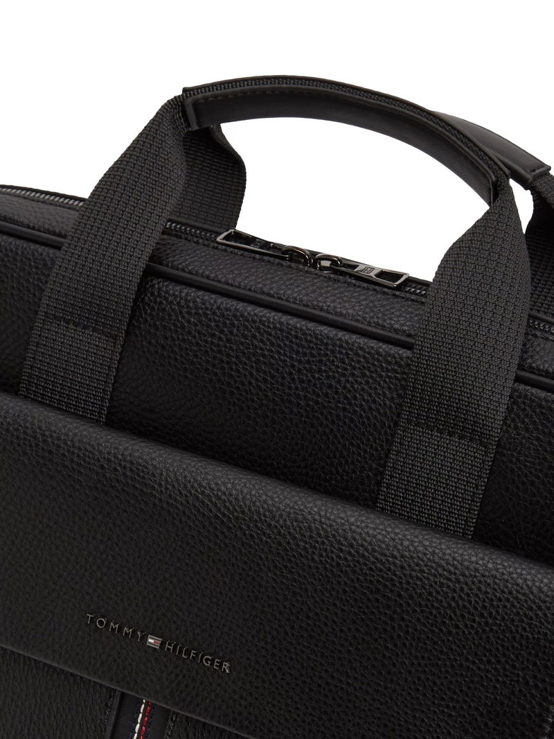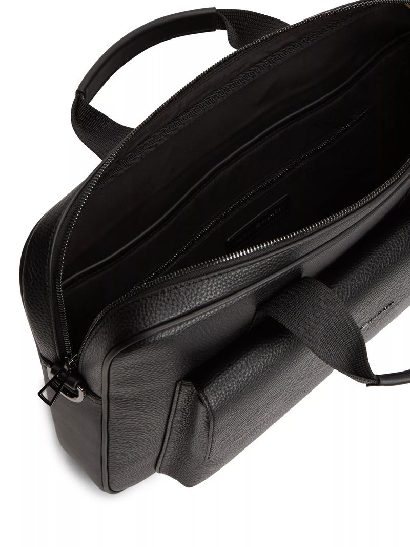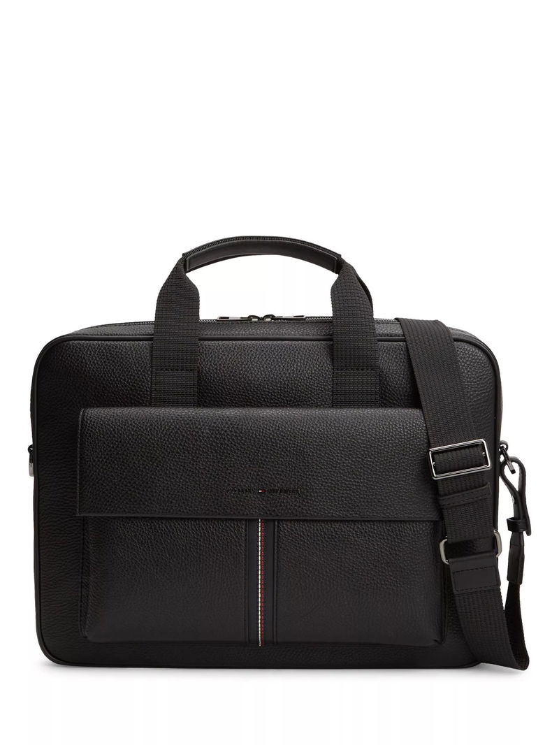 Flap Pocket Pebble Grain Laptop Bag, Black